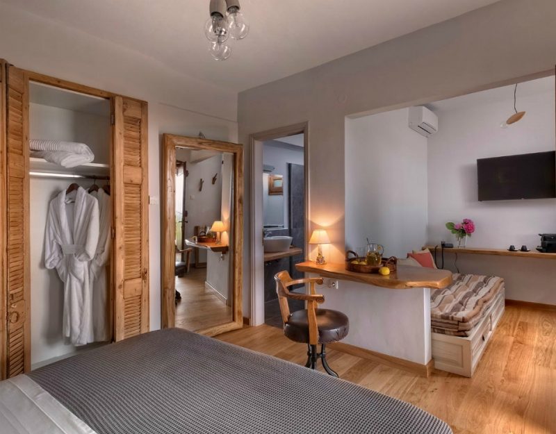 If you are looking for a romantic getaway, a rich Greek breakfast, or a rich seating area with its own fireplace, it is certain that this suite will not disappoint you.